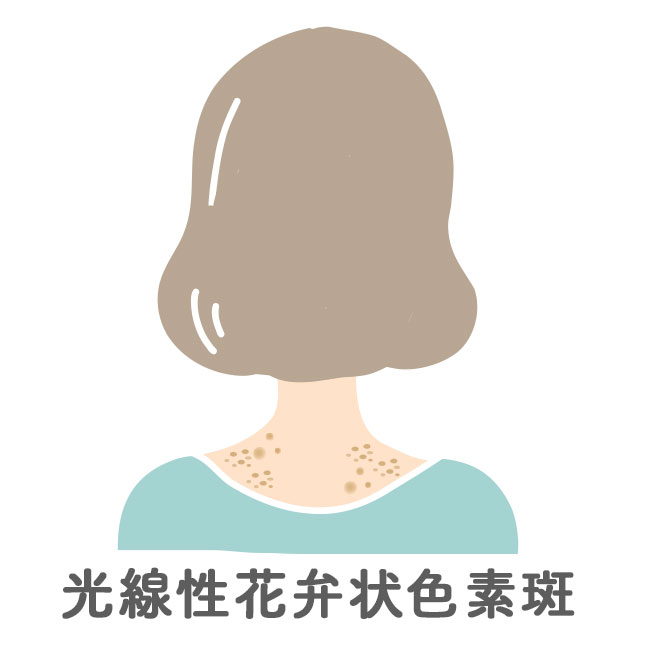 プールや海で日焼けをした後に、肩や背中の上のほうにできてくるシミで、金平糖あるいはカラスの足跡のような形をしています。